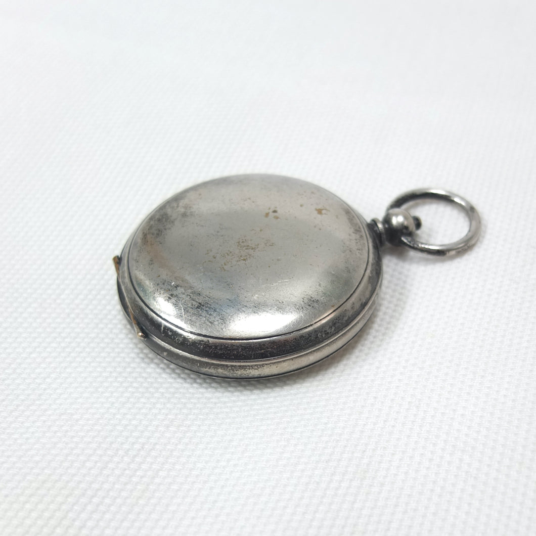 This compass has a nickel-plated brass hunter case which would originally have had a 'Bronzed' finish - this has worn away on the exterior of the case, but is very well preserved inside the lid. With a bevelled glass, metal compass card, English bar needle on a jewelled pivot, and a transit lock operated when the lid is closed. Barker supplied many of their compasses unsigned to the retail trade, often - as seen in this example - with just 'Made in England' engraved on the compass card.