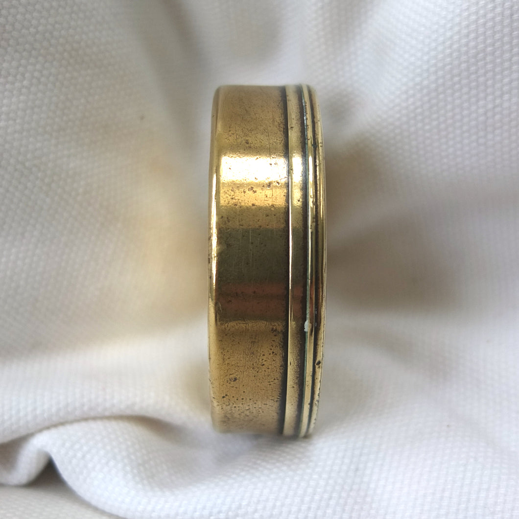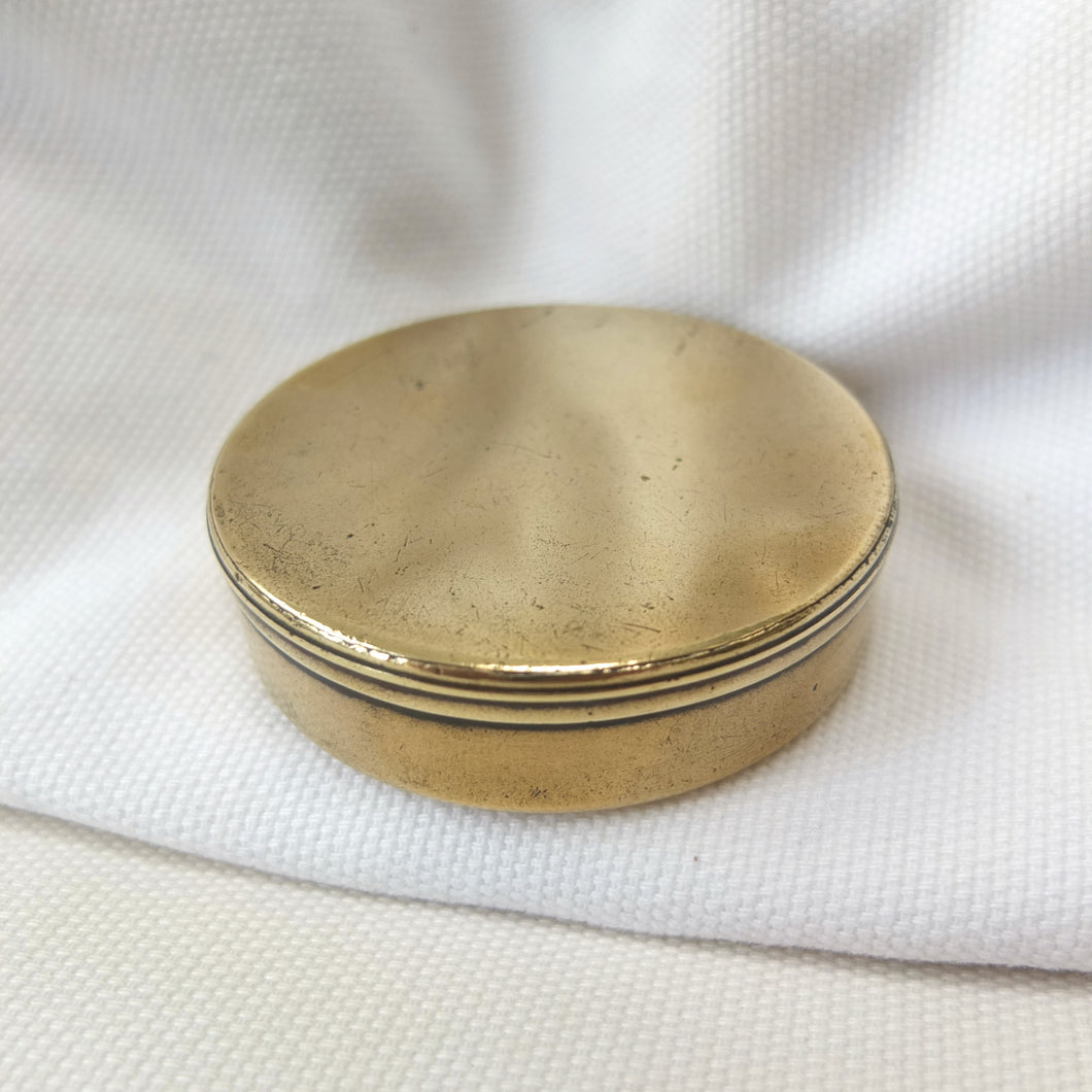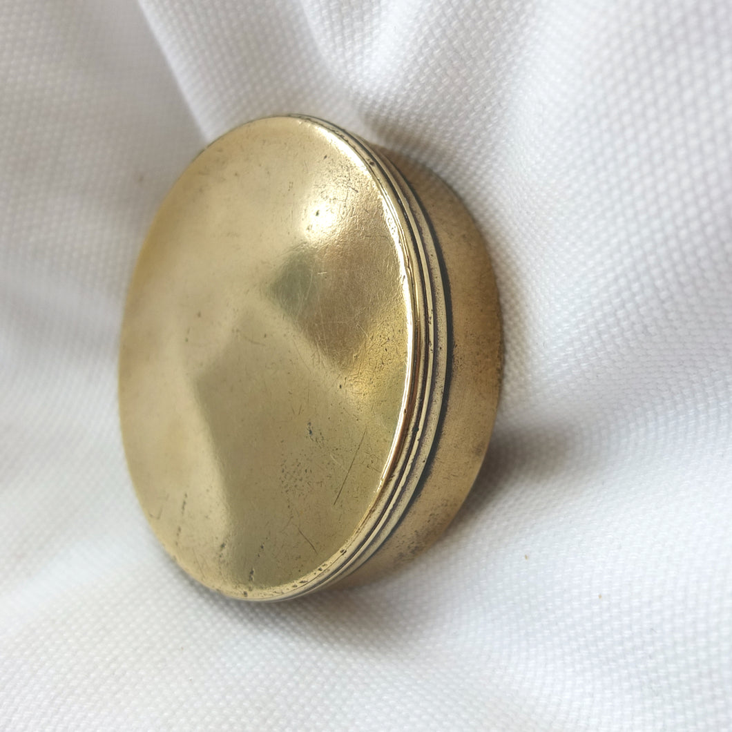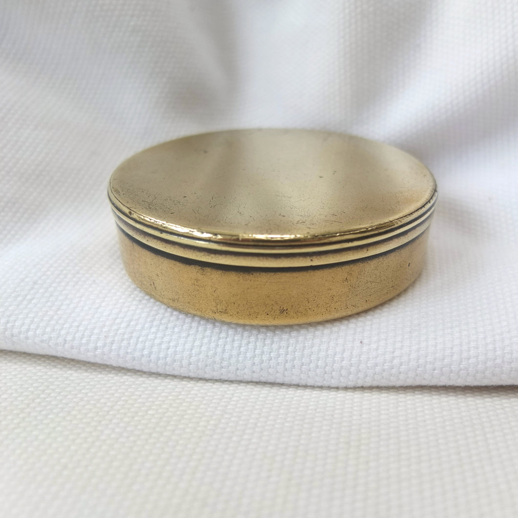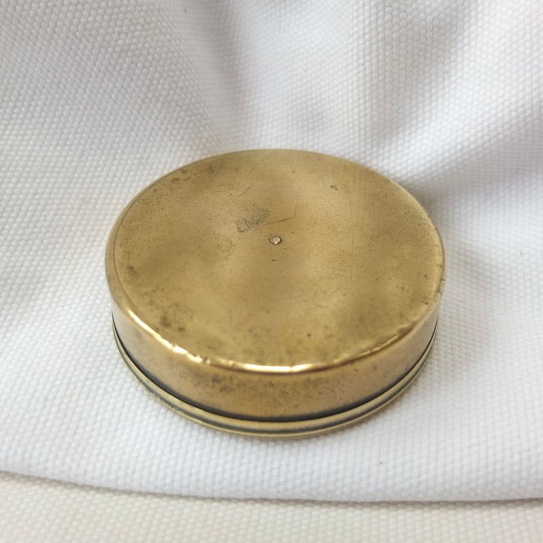 This is an unusually large example of a Singer's Patent, at 65mm diameter - most brass box Singer's were smaller, at around 45mm.