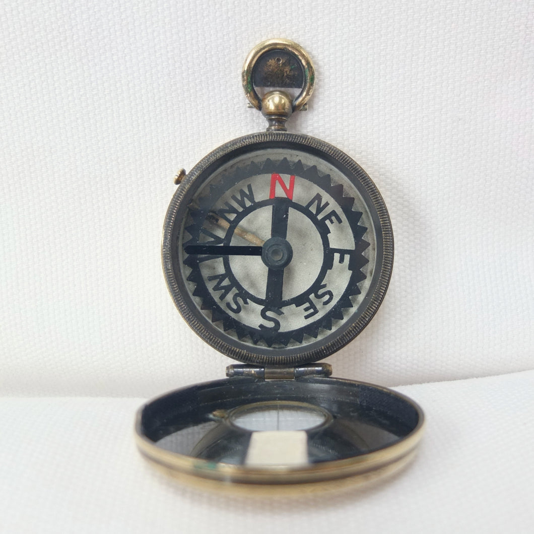 In very good condition and finds north very well. The skeleton compass card is in very good condition. The glass is in very good condition. The brass case is in very good condition, with a few marks and general signs of age and wear.