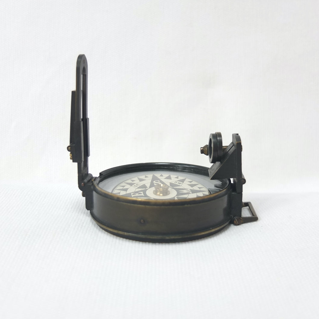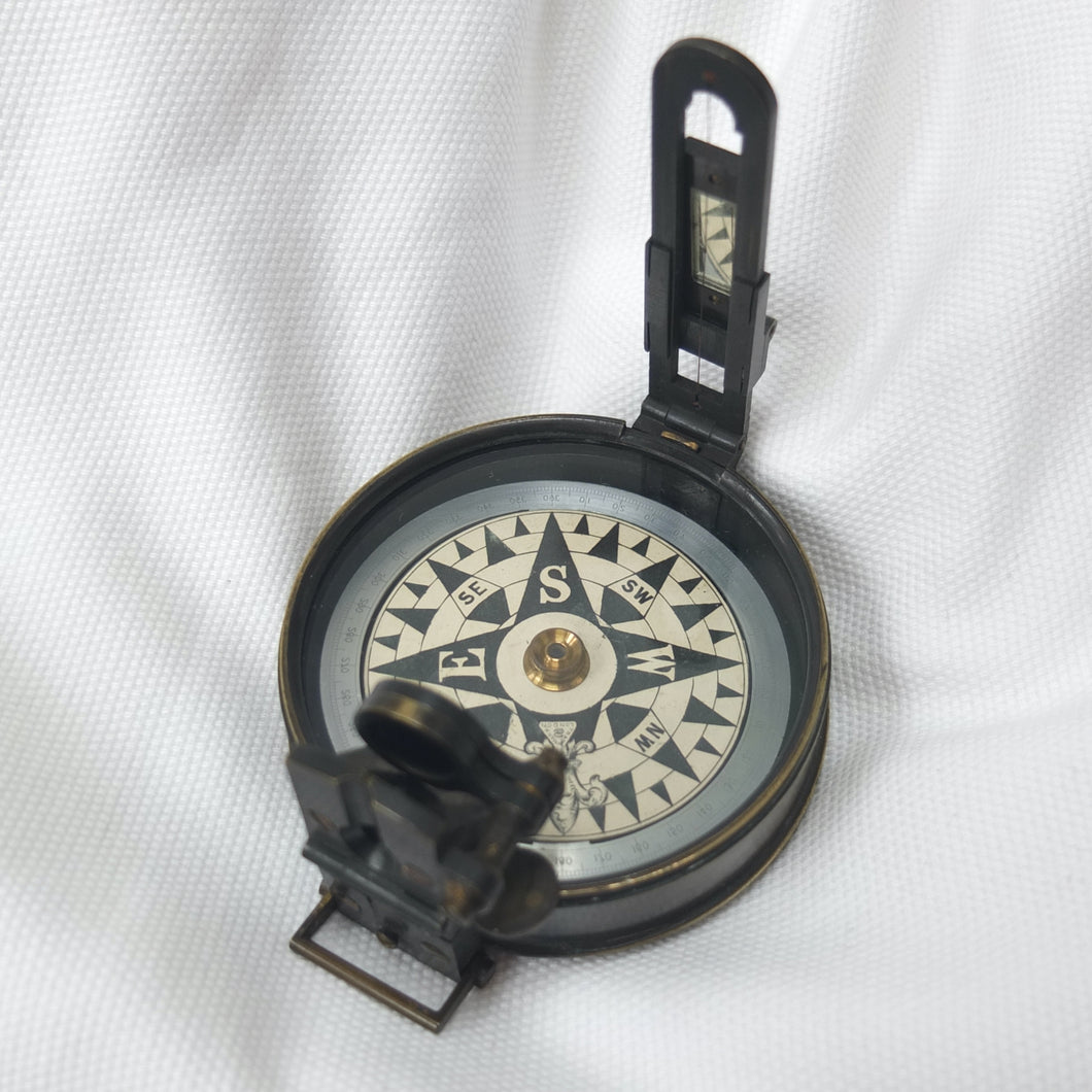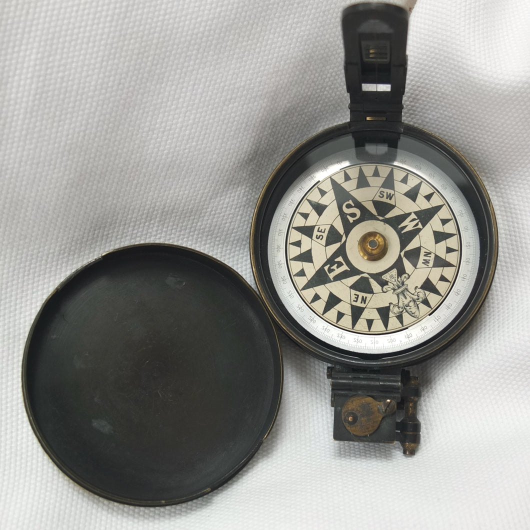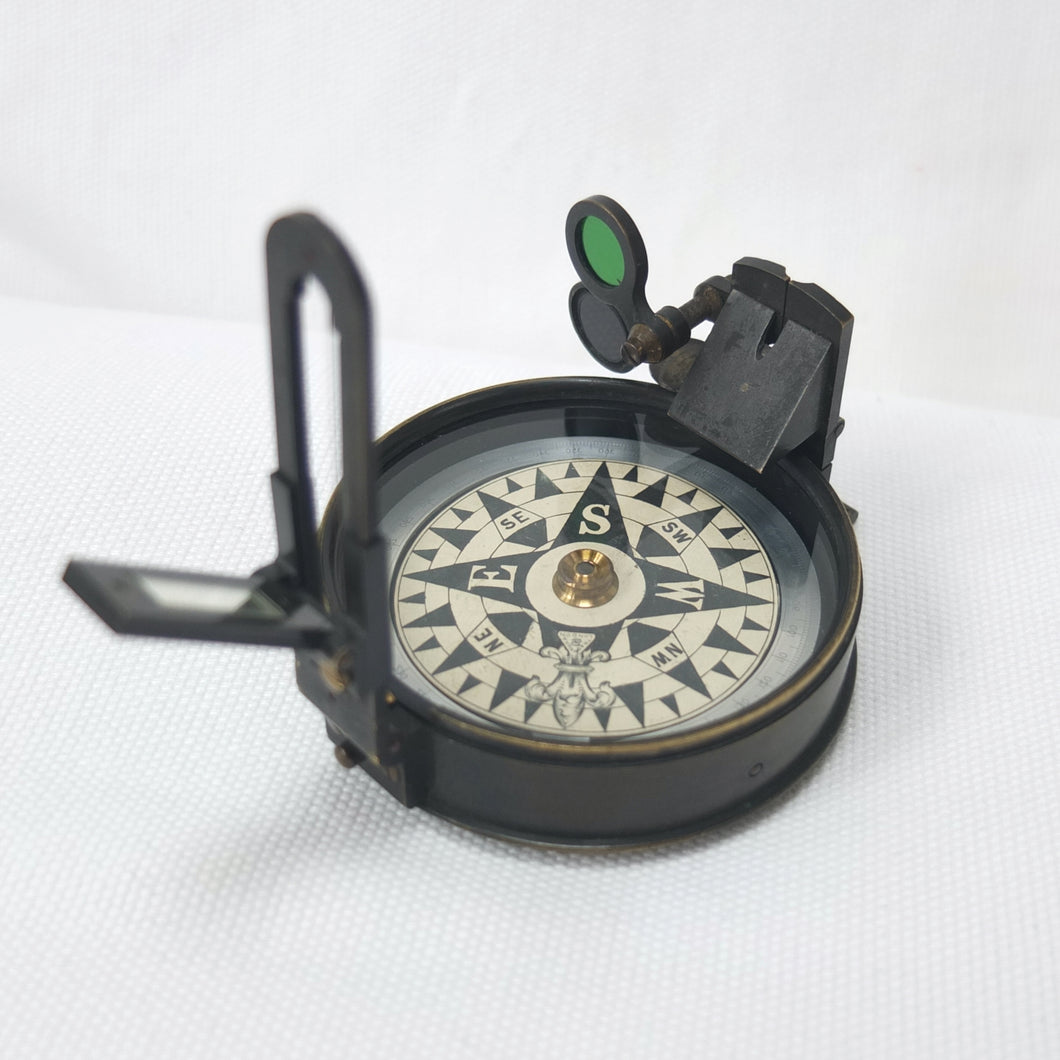 In very good condition and full working order. The compass finds North well. The brass case has some wear to the original bronzed finish. The dial, glass, prism and sights are all in very good condition.