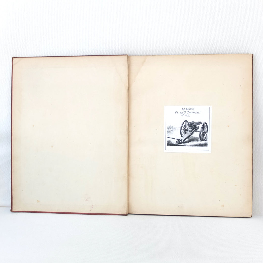 In good condition. The boards are in good condition, with general signs of use, wear to the edges, corners and spine, and some marks. The binding and hinges are good and secure. The text is in very good condition with some minor foxing to the title page, a few minor marks, and some small archival paper tape repairs to the inner margins of a few pages. The photographic plates and illustrations are in very good condition. There is a decorative bookplate illustrated with an engraving of a Gatling Gun on the front endpapers, with the name ‘Peter G. Smithurst’.