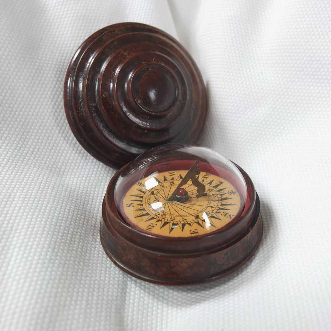 Various other types of wooden domed-glass sundial compasses were produced in England in the first half of the 19th century - including the 'Magnetic Sundial' made by Samuel Porter in 1824. Elliot Brothers also produced a range of high quality brass-cased pocket sundials in the 1850s.