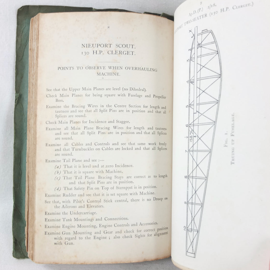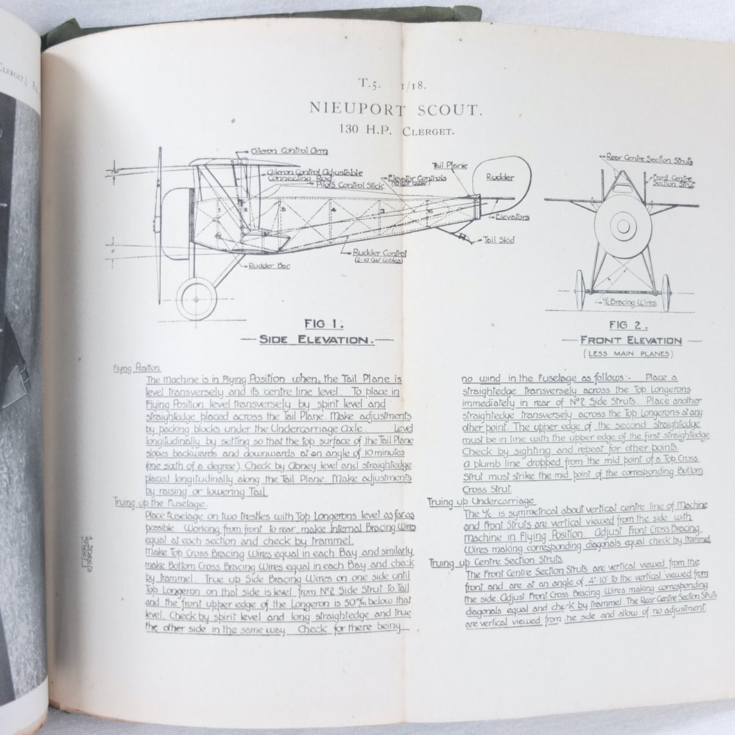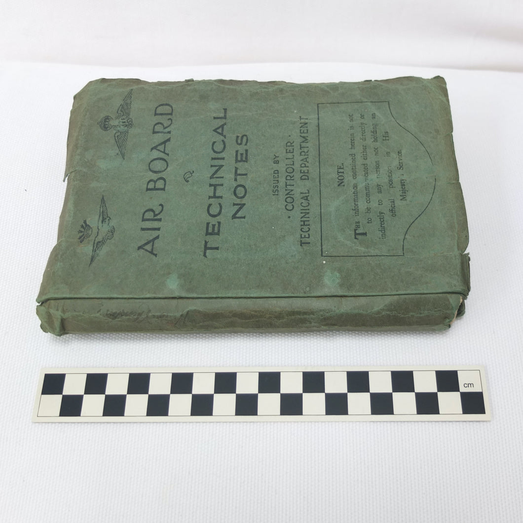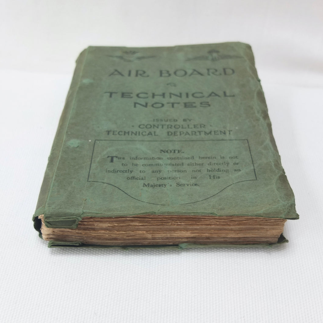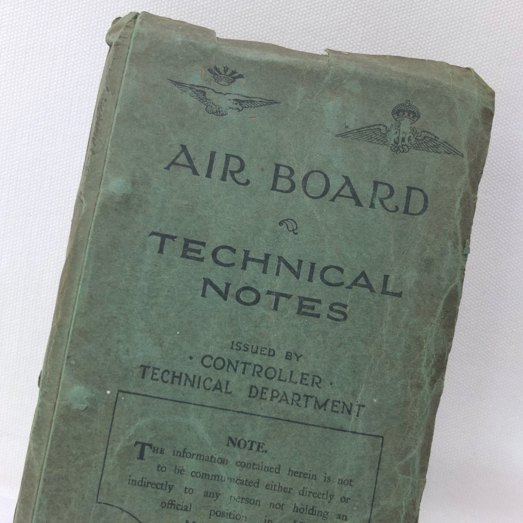 A rare original WW1 edition of Air Board Technical Notes, dating from February 1918. It would have been used by pilots, observers, airmen, fitters and riggers of the RFC and RNAS during WW1. The cover has the emblems of both the Royal Naval Air Service and the Royal Flying Corps above the title. First issued in 1917, with amendments added in early 1918, this is a detailed and practical manual, with technical, rigging and maintenance instructions for RFC and RNAS aircraft in service in 1917-1918. Produced by the Air Board, the manual is very well illustrated throughout with numerous diagrams, fold-outs, technical drawings and photographs.