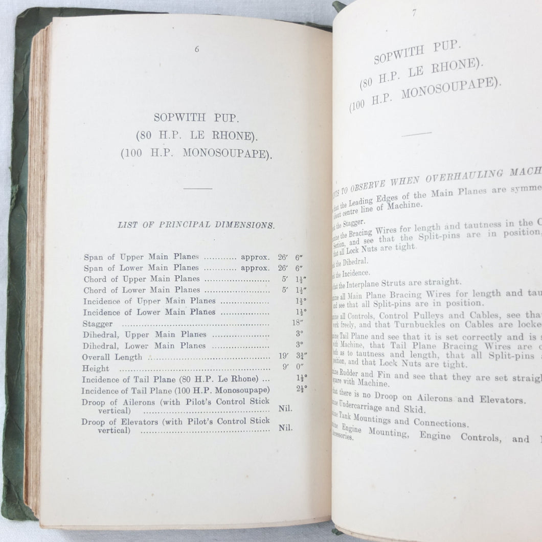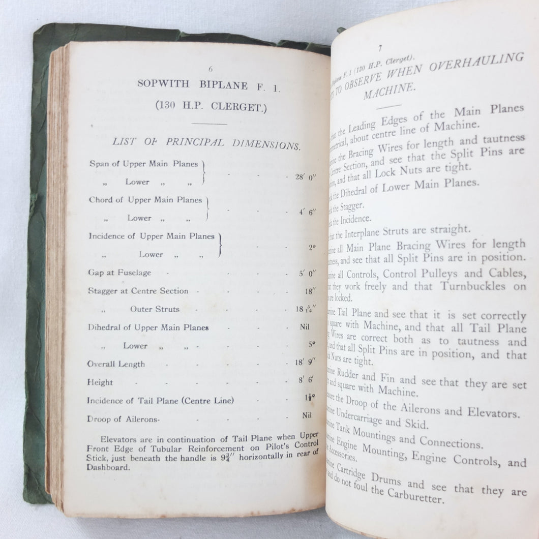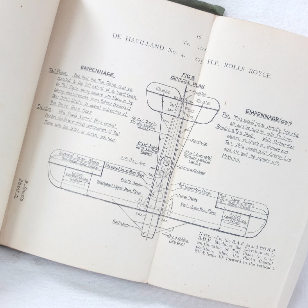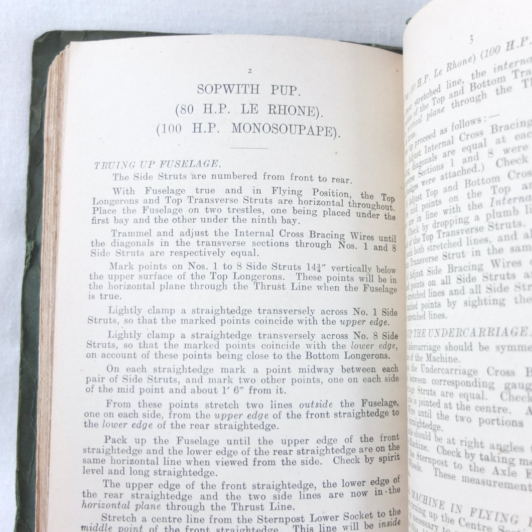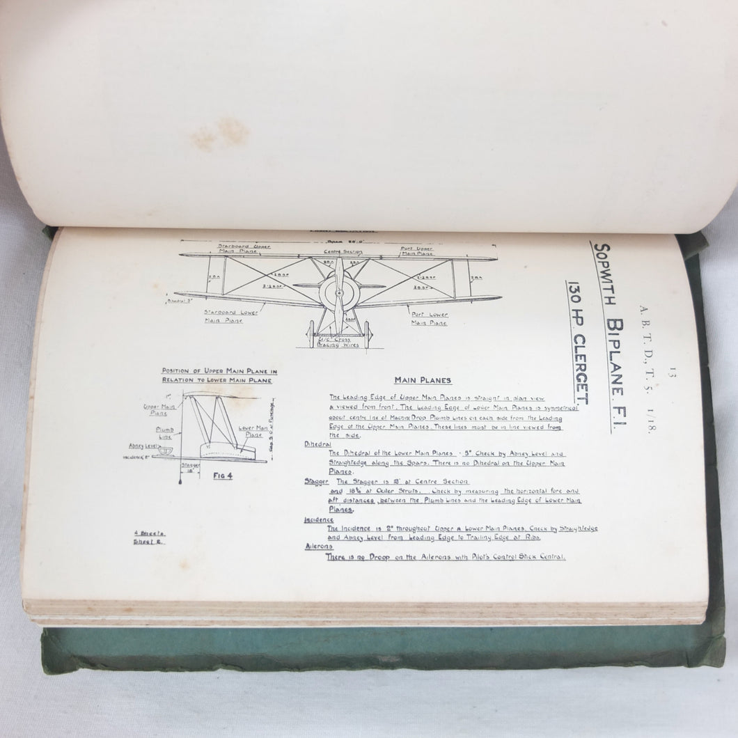 A rare original WW1 edition of Air Board Technical Notes, dating from February 1918. It would have been used by pilots, observers, airmen, fitters and riggers of the RFC and RNAS during WW1. The cover has the emblems of both the Royal Naval Air Service and the Royal Flying Corps above the title. First issued in 1917, with amendments added in early 1918, this is a detailed and practical manual, with technical, rigging and maintenance instructions for RFC and RNAS aircraft in service in 1917-1918. Produced by the Air Board, the manual is very well illustrated throughout with numerous diagrams, fold-outs, technical drawings and photographs.