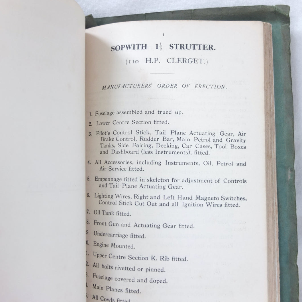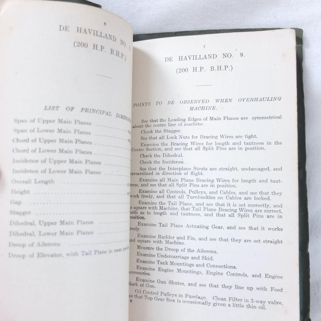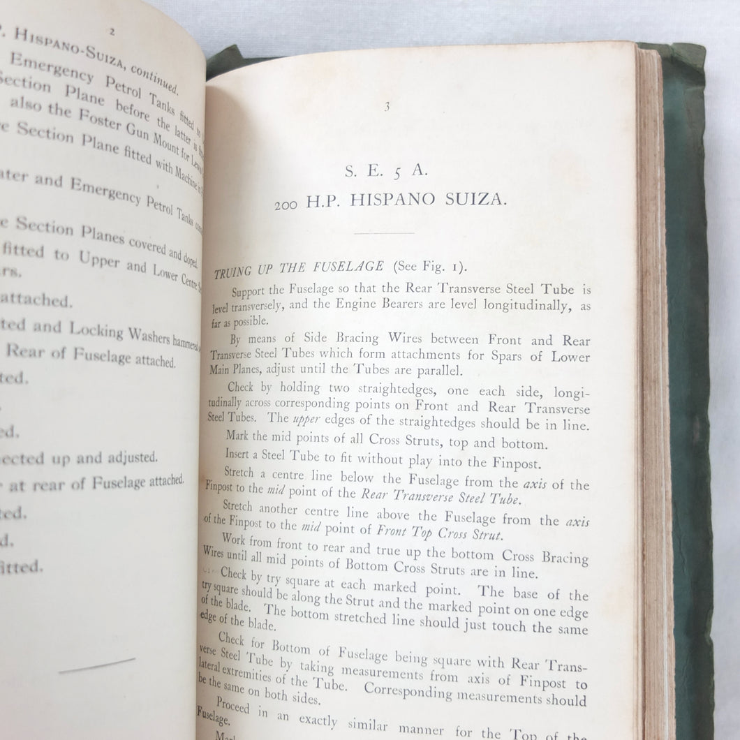 The manual includes details of 21 aircraft: BE2c, BE2d, S.E.5A, Spad Biplane (Type S. VII), Bristol Fighter F2A and F2B, DH.4., DH.5., DH.6., D.H.9., RE8, Martinsyde Scout, Sopwith F.1 and 2.F.1 Camel, Sopwith Strutter, Sopwith Dolphin, Sopwith Pup, Maurice Farman Shorthorn and Longhorn, Vickers FB9, and the Nieuport Scout. Many of the Royal Flying Corps most celebrated aircraft are represented in this historic aviation manual.