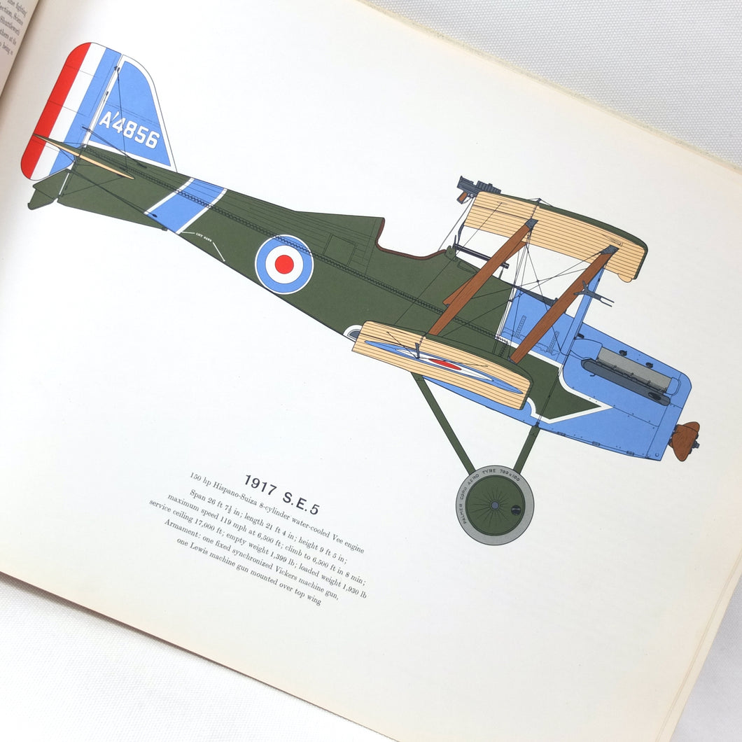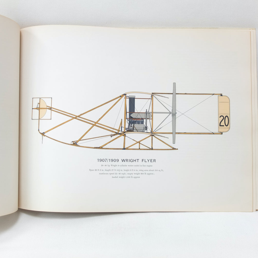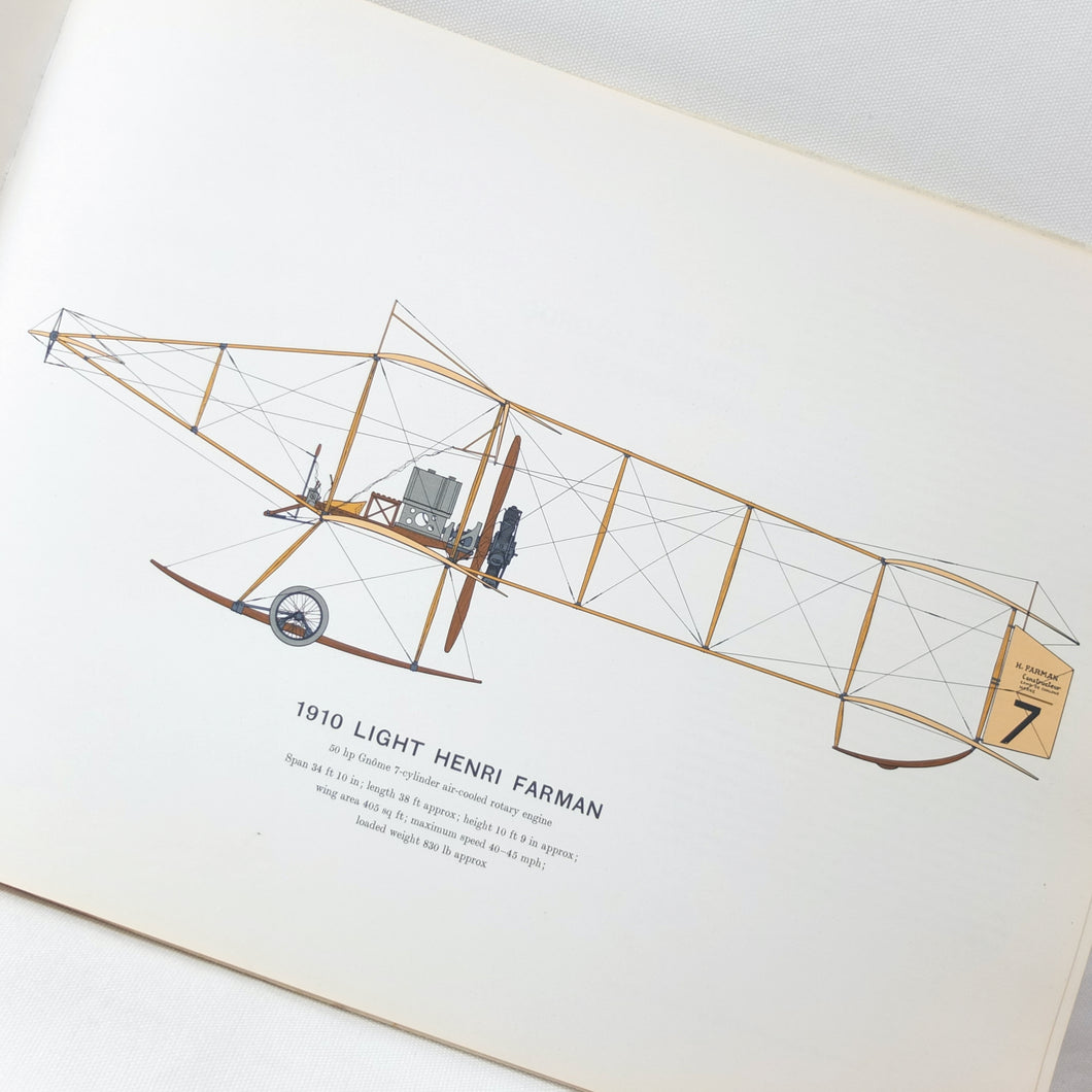 List of plates: (1) Wright Flyer (2) Blériot XI (3) Antoinette (4) Light Henri Farman (5) Gordon Bennett Deperdussin (6) Avro 504K (7) S.E.5 (8) Albatross D-V (9) Sopwith Camel (10) Spad S.13 (11) Fokker D-VIII (12) Handley Page 0/400.