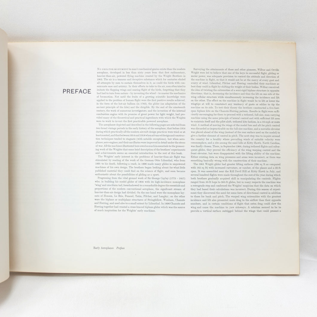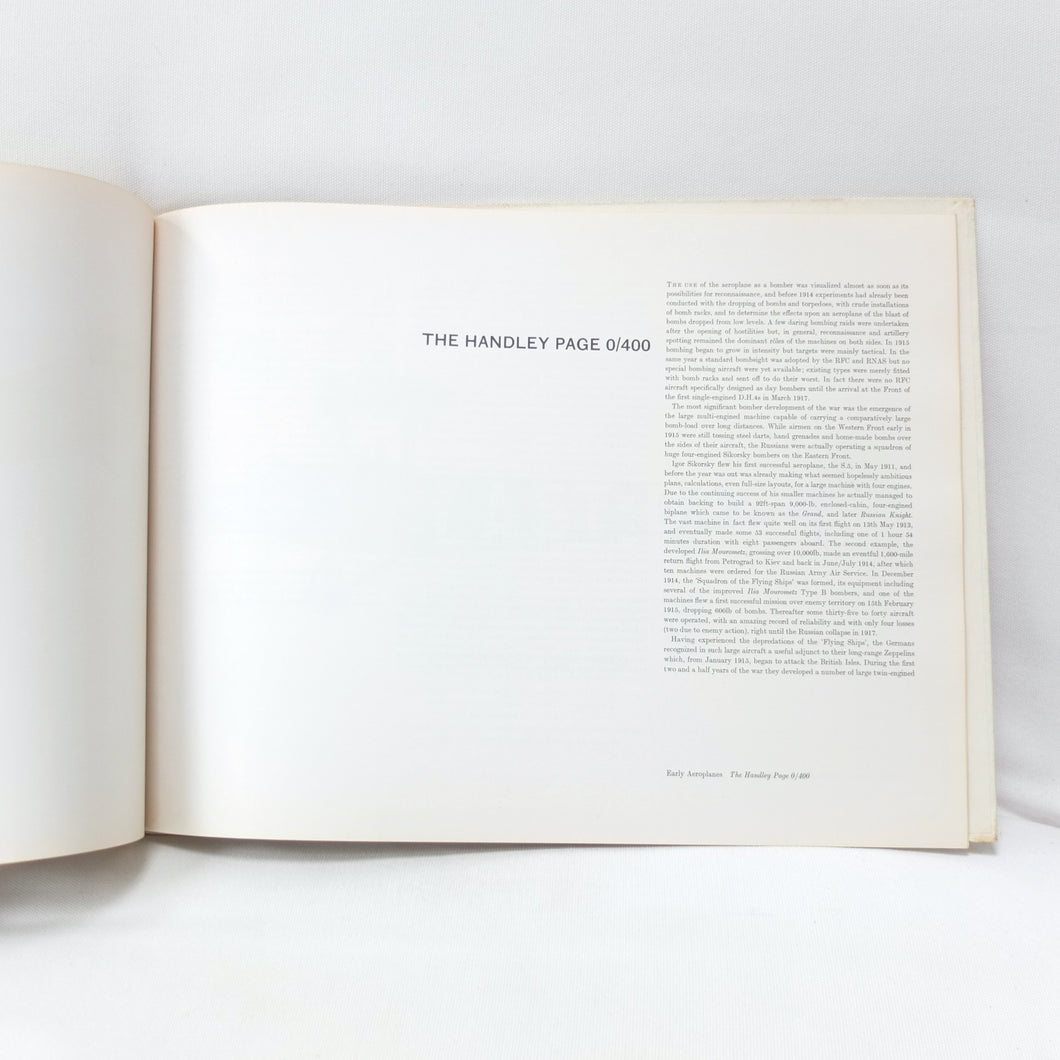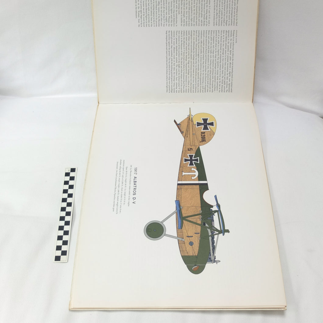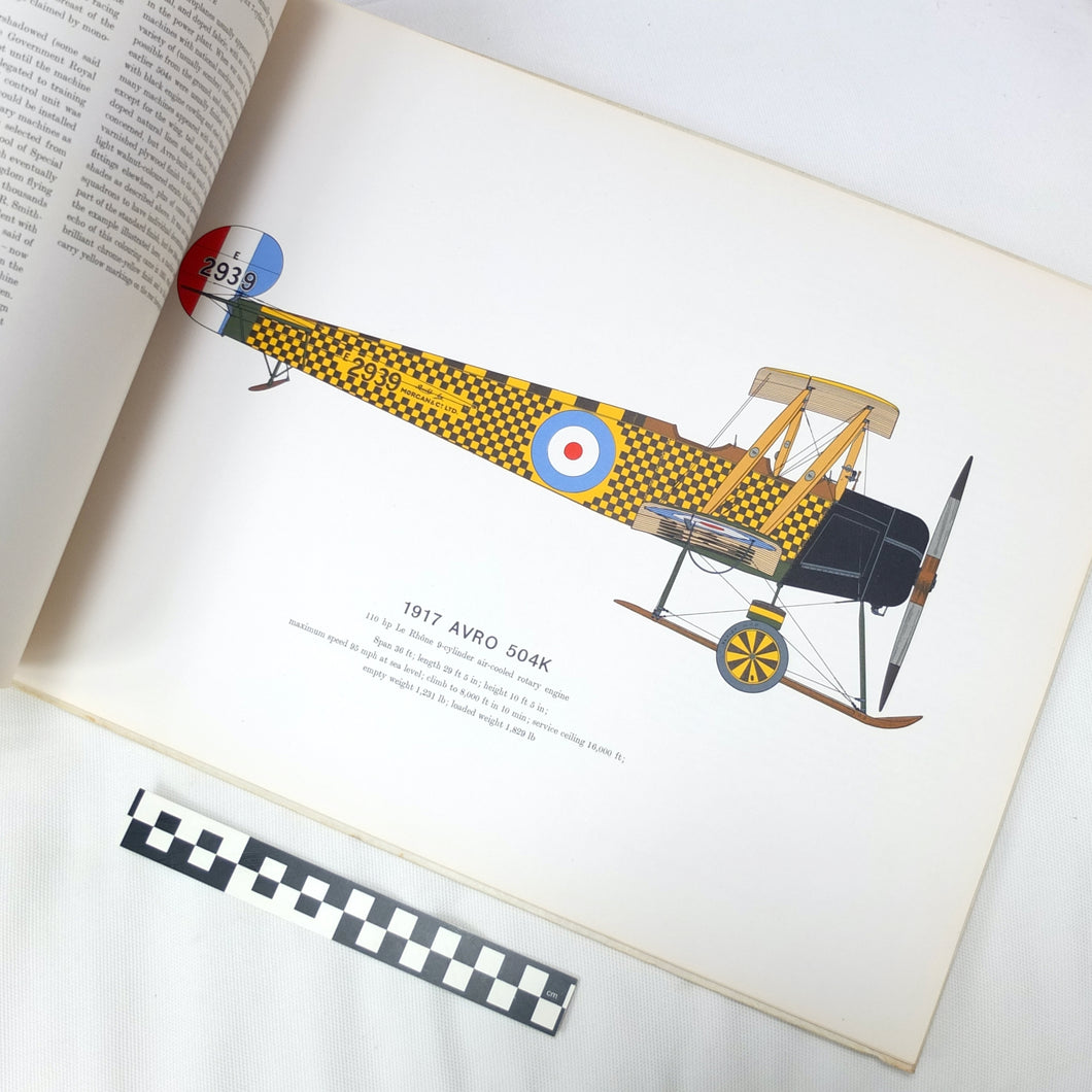 The 1962 first edition of Early Aeroplanes 1907-18 by the well-known British aviation artist Roy Cross. This is a large format book, measuring 14 by 19 inches (380 x 480mm) illustrated with 12 full page color plates by the author. Many iconic WW1 aircraft types are included, alongside the very earliest aeroplanes like the Wright and the Bleriot.