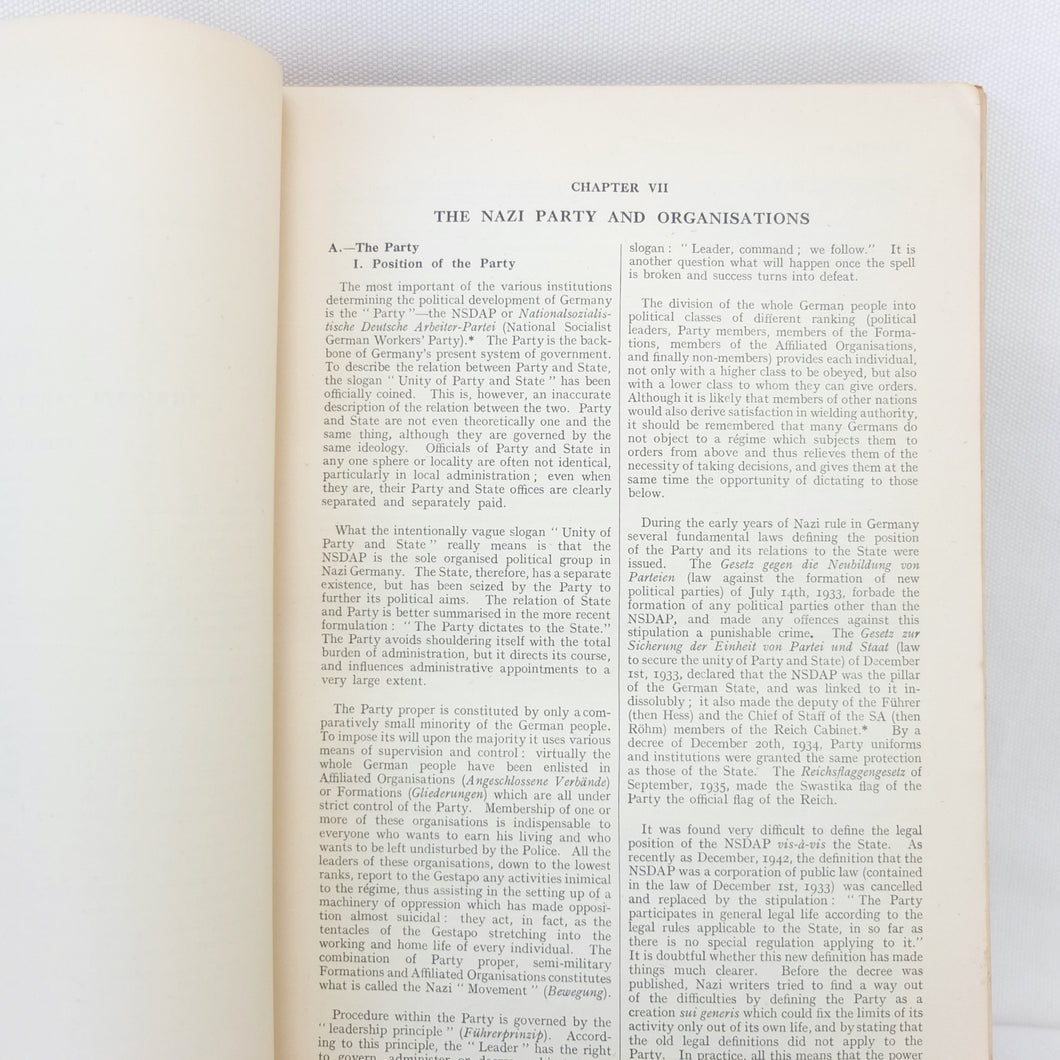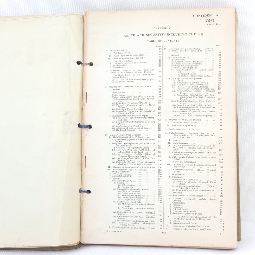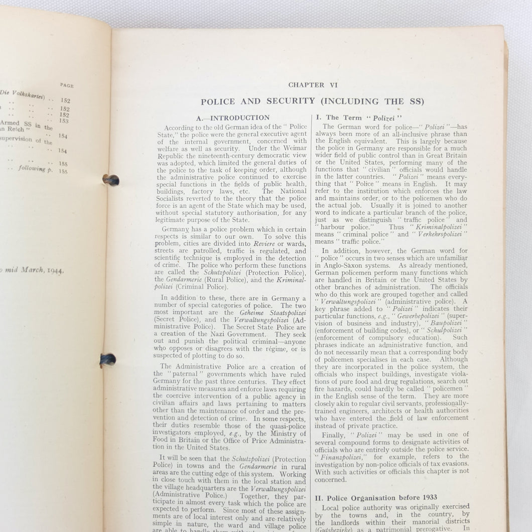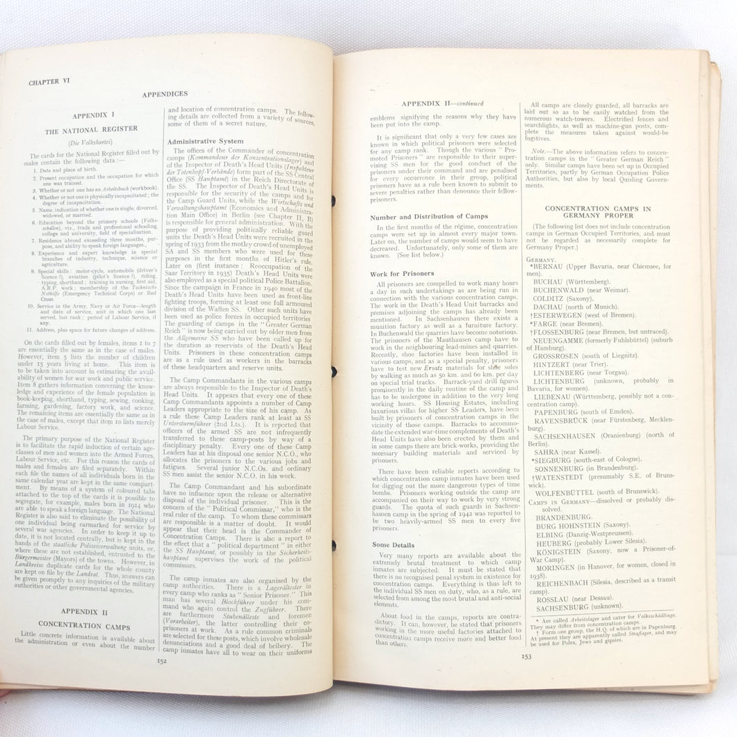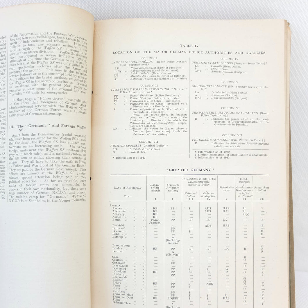 The sheer amount of information included in the Germany Basic Handbook is extraordinary, considering the war was still in progress when it was produced. It is also very interesting to note exactly how much the Allies knew about the internal workings of the Nazi state at this time. The information on the SS, Gestapo, Concentration Camps, etc shows that a great deal was known about exactly what was going on. This unique handbook is a fascinating primary source and detailed insight into the internal workings of Third Reich and the German war machine in the last year of the war.