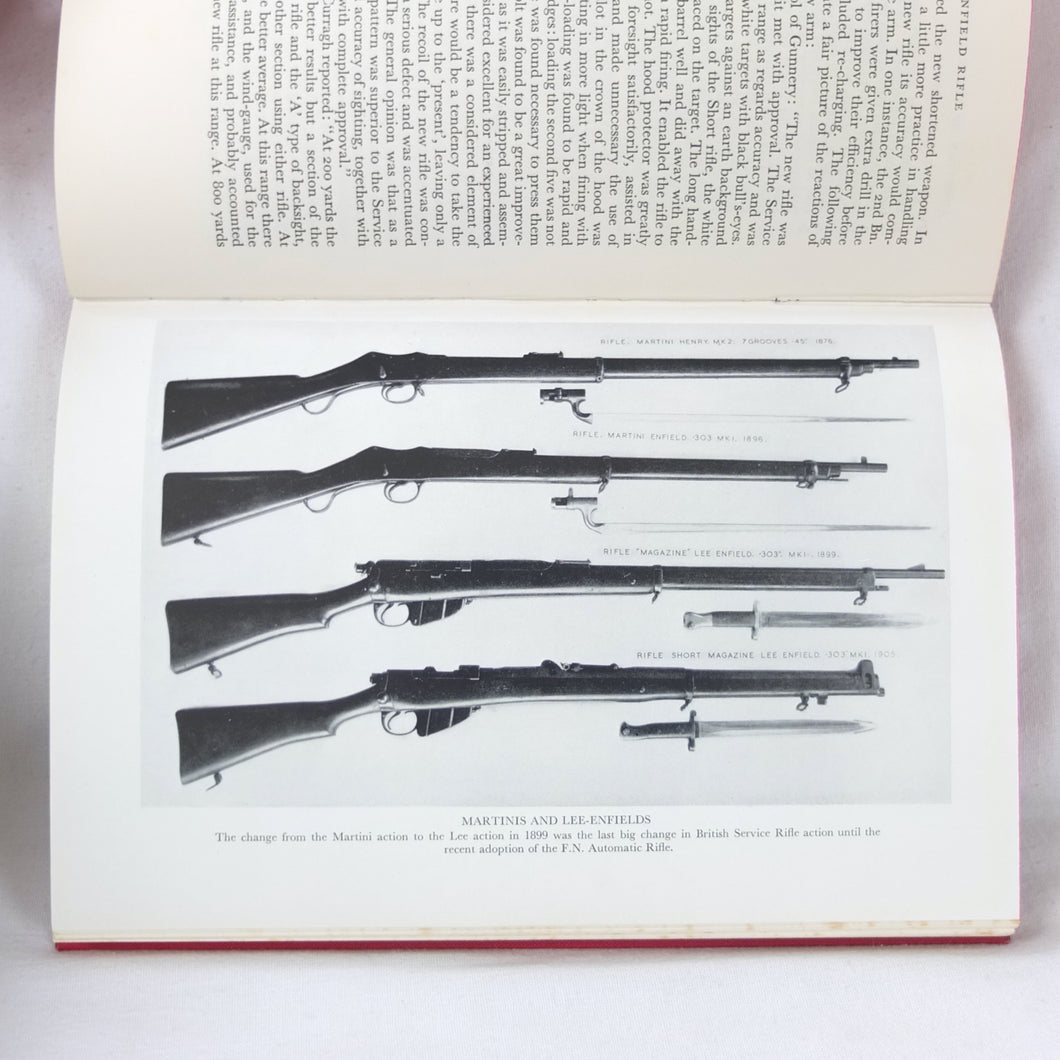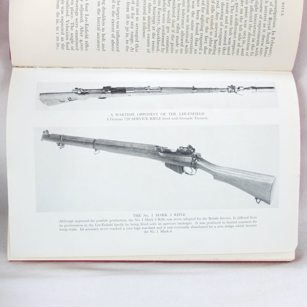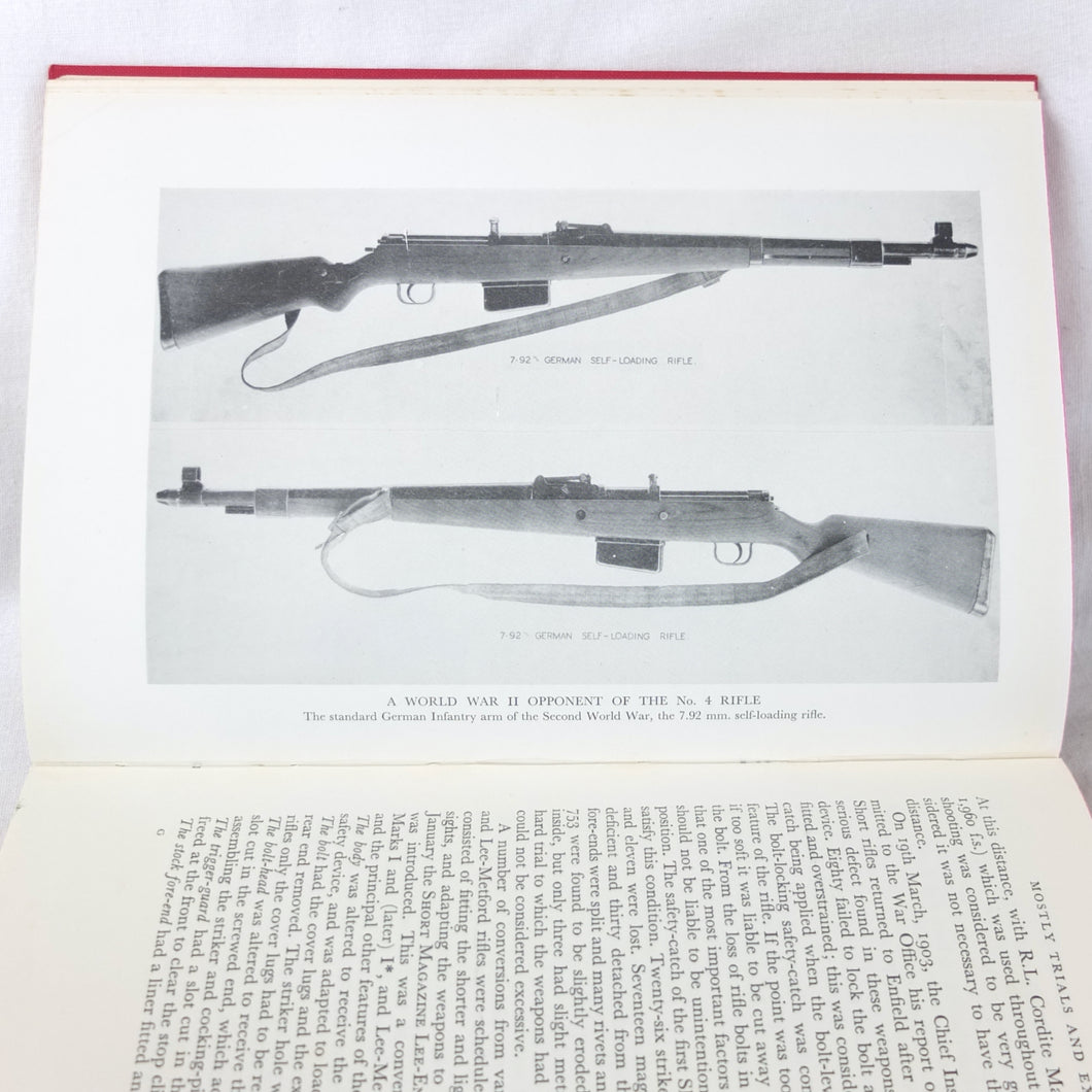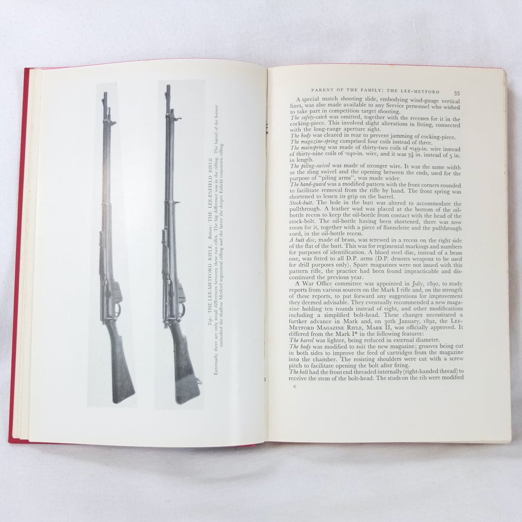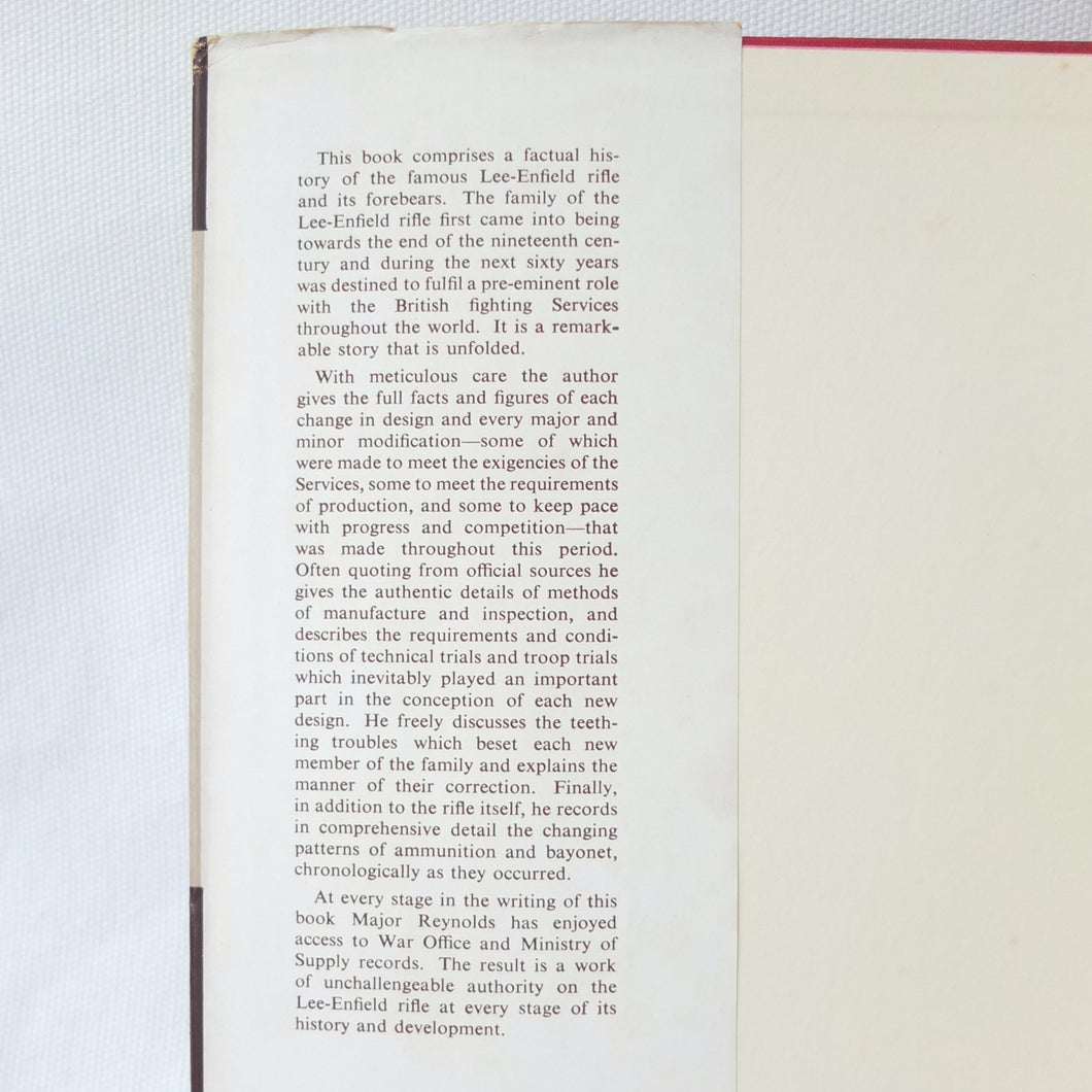 The 1st edition of Major E. G. B. Reynolds classic work on the Lee Enfield rifle, published by Herbert Jenkins in 1960. This is a very detailed and comprehensive history of the British army's legendary service rifle, the .303 Lee-Enfield. Reynolds covers the forerunners of the Lee-Enfield, such as the Snider, the Martini-Henry and the Lee-Metford, before going on to discuss all the various models and variants of the Lee-Enfield rifle, the carbine, and the numerous types of bayonet. All the rifles that were produced from the Boer War until after the Second World War are included. Full of fascinating detail, this book is an invaluable reference work for anyone interested in the Lee-Enfield rifle. The book is very well illustrated with drawings, diagrams and a series of excellent black and white plates.