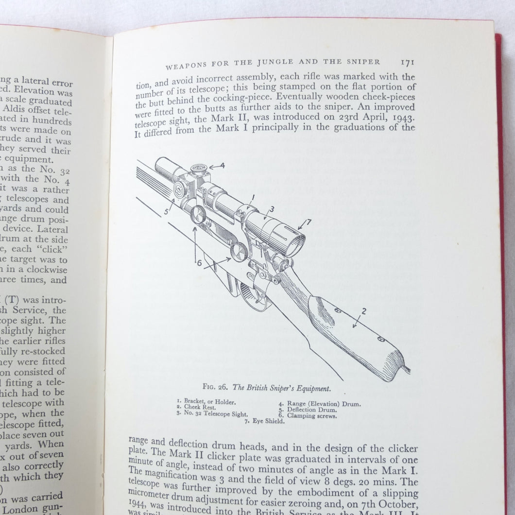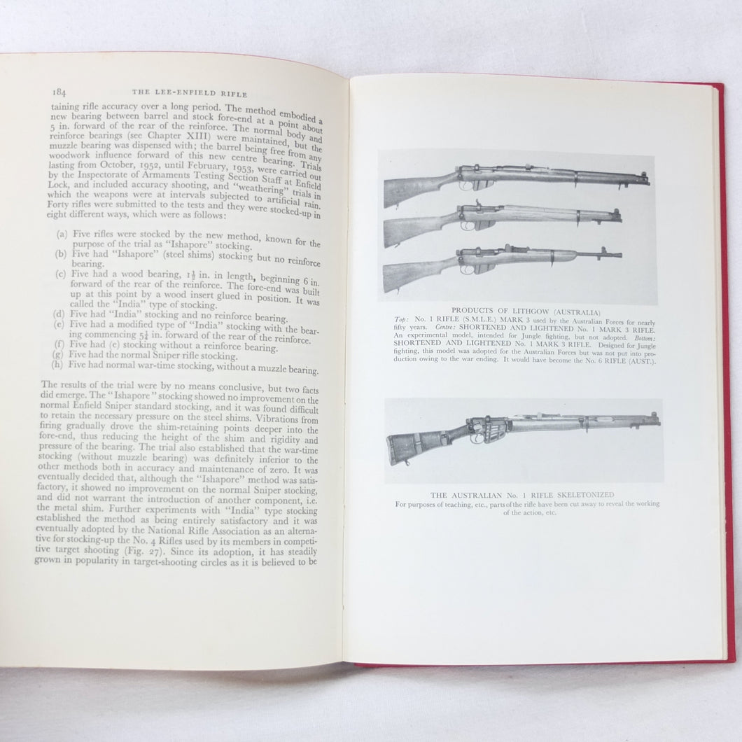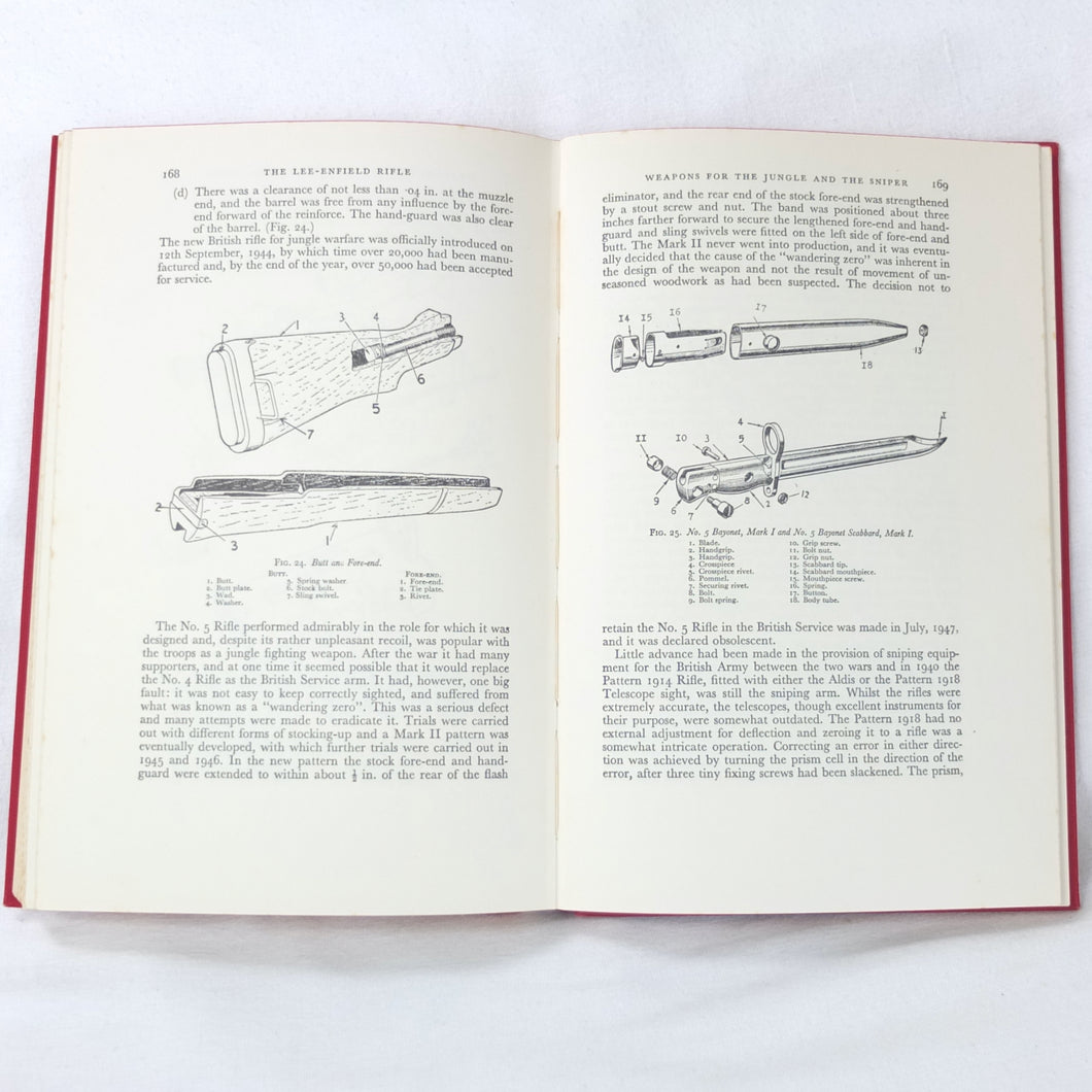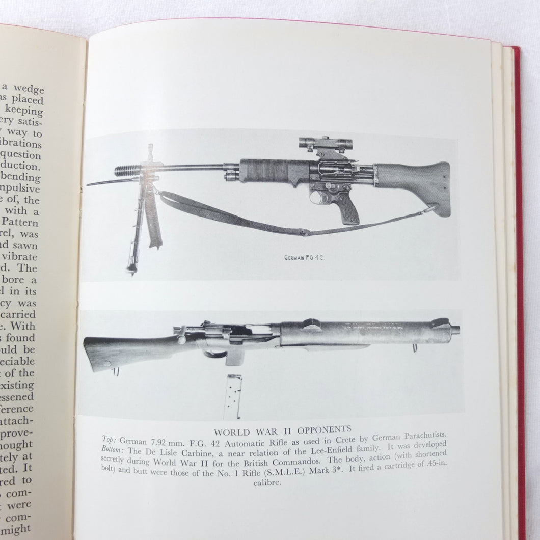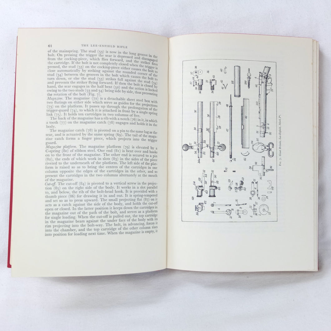The 1st edition of Major E. G. B. Reynolds classic work on the Lee Enfield rifle, published by Herbert Jenkins in 1960. This is a very detailed and comprehensive history of the British army's legendary service rifle, the .303 Lee-Enfield. Reynolds covers the forerunners of the Lee-Enfield, such as the Snider, the Martini-Henry and the Lee-Metford, before going on to discuss all the various models and variants of the Lee-Enfield rifle, the carbine, and the numerous types of bayonet. All the rifles that were produced from the Boer War until after the Second World War are included. Full of fascinating detail, this book is an invaluable reference work for anyone interested in the Lee-Enfield rifle. The book is very well illustrated with drawings, diagrams and a series of excellent black and white plates.